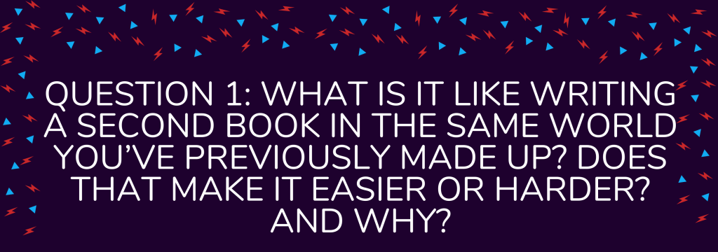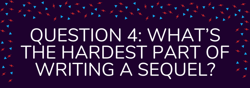 Katy: I’ll echo what Kat and Foody are saying here which is that a 2nd book is super unique in that you have to start answering some questions about the plot and the world, but leave enough twists so that book 3 can really pack a punch. There’s a lot of uncertainty in a second book–you’re restricted not only by what you’ve set up in book 1, but also what you hope to accomplish in book 3. You need to progress the story without resolving it. No one wants a book 2 that feels like filler until the real action starts! It’s a delicate balance.