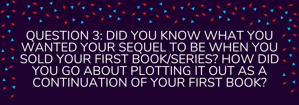 Kat: Oh that’s a really good point, Foody. I legit will forget pertinent details if I’ve read book 1 too long ago (aka a year ago). I’ve only ever written one sequel (we’re told not to write a sequel until we’ve queried/sold the first book because you can’t query/sub a sequel), and it was one of the hardest things I’ve done in my writing career. It’s true that the world is already “built” up for the readers, but there’s the added pressure of continuing to build up this world in a way that makes sense and raises the stakes. You can’t just do the same things you did in the first book or keep the stakes at the same level, because it’s expected that you make everything…bigger somehow. And it’s very scary to try (and feel like you’re failing).