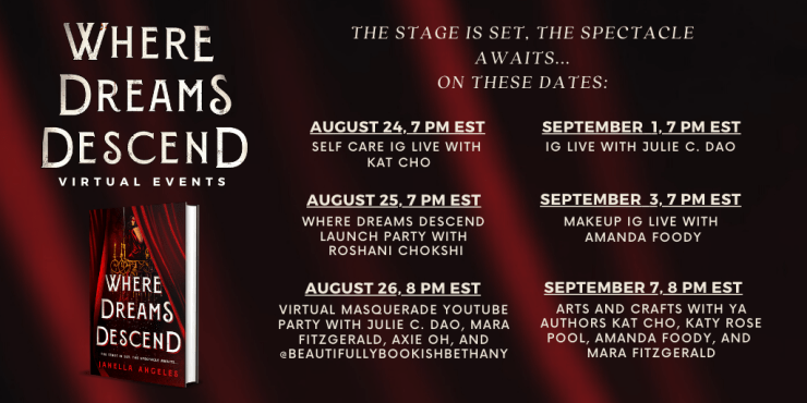 Oh thank you so much!! Like any fight scene, big show performances and dance numbers can be some of the hardest scenes to write because it’s a lot of movement, spatial awareness, and external and internal action that need a thread of tension to keep us engaged. In many ways, these scenes feel the most like a balancing act because you need to provide the experience for both the character and the reader. Though I’ve never been a true performer myself (I wish I had the chops for it but I actually have terrible stage fright!), I’ve always been a huge fan of watching performances from actual stage productions to consuming TONS and tons of dance television shows and movies. This obsession definitely goes back to my parents not putting me through dance lessons when I was younger even though I’d always wanted them–so watching other people dance and act on stages was the next best thing, which absolutely fueled how much of a visual writer I am today and played a huge part in Where Dreams Descend.